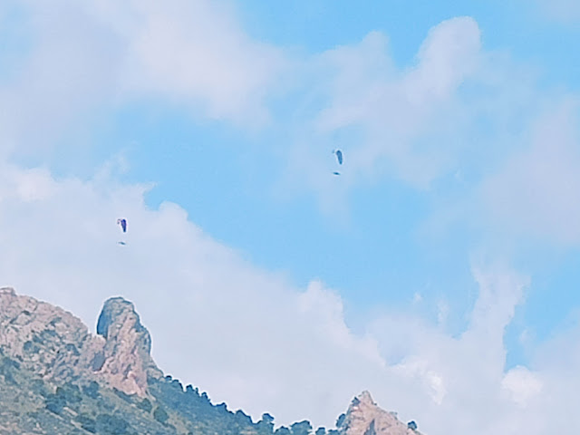 Hoy, una pareja de águilas (parapentes) volaba libre sobre la cresta de l´ Esquenall de l´Ase (La cresta de la espalda del Dragón), Cabeçó d´Or.
